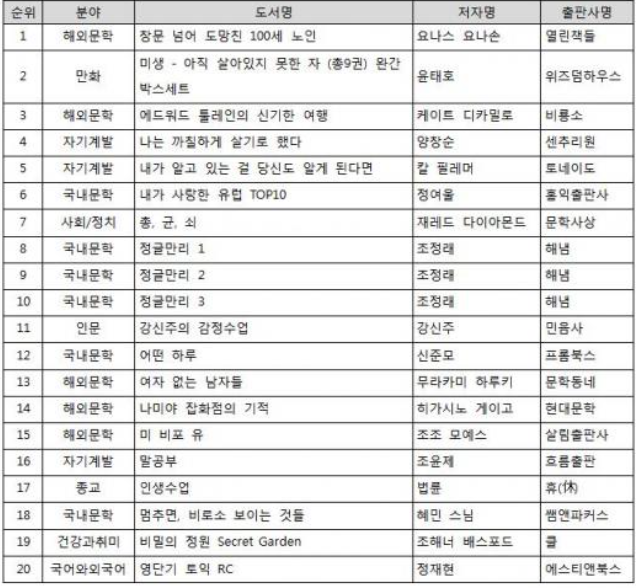 [2] 네이버 블로그 - 국내 역대 베스트셀러 순위 20 - 네이버 블로그 (https://m.blog.naver.com/inzzang9807/220858129333)
