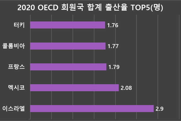 [4] 컨슈머포스트 - [Top 10 Korea] OECD 국가 출산율 1위는 이스라엘 (http://www.consumerpost.co.kr/news/articleView.html?idxno=305698)