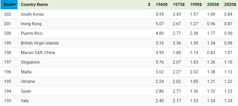 출산율이 낮은 나라 TOP 10
