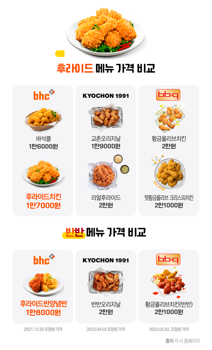 가격은 후라이드치킨을 선택할 때 중요한 요소 중 하나입니다. 다양한 브랜드의 후라이드치킨 가격을 비교해보면, BHC, 교촌, BBQ 등의 브랜드가 있습니다.