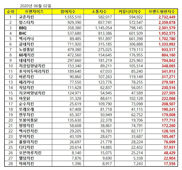 양념치킨, 치킨 브랜드, 치킨 평점, 치킨 순위, 소비자 선호도